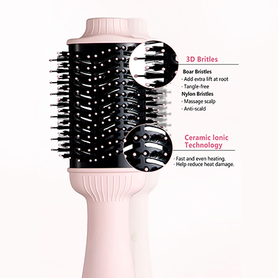 - 【Negative Ion Technology】The hot air brush distributing heat evenly to minimize damage. Negative ions quickly penetrate the hair to help lock in moisture, nourish damaged hair, and reduce frizz and static.