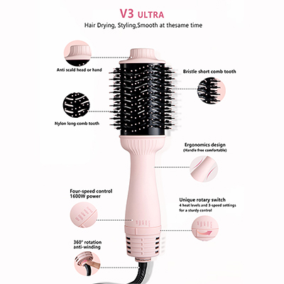 - 【4-in-1 Hair Dryer Brush】The hair dryer brush can be used as a comb, hair dryer, hair straightener, and curling iron. Whether at home or traveling, you can easily change your look at any time.