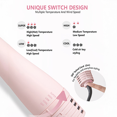 【Suitable for all hair types】The hair dryer brush has 4 heating settings (SUPER/HIGH/LOW/COOL). The blow dryer brush works with a variety of hair types and has 4 flexible heat settings to meet your specific hair texture and styling needs.