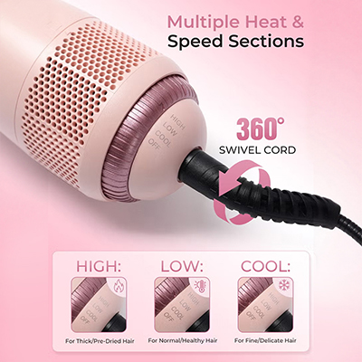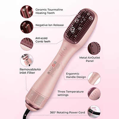 Low MOQ | Sample Available Hair Dryer Brush Ceramic Dryer,Styler and Straightener 1200W Pink Gold