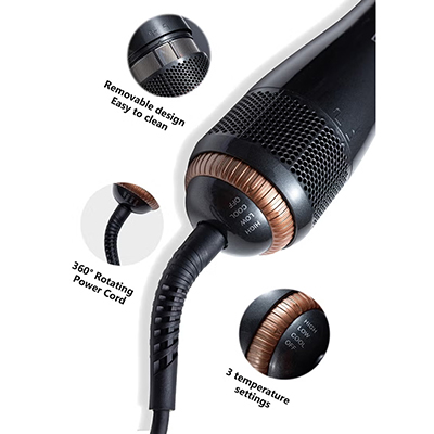 - Has three basic functions in one device, allowing you to dry damp hair, volumize and shape dry hair, or slow combing to smoothen, remove breakages, polish hair and give it a smoothness that lasts for the next day.