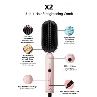 OEM/ODM Supported Dual Voltage Hair Straightening Comb Three-Gear Adjustment