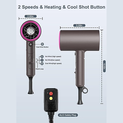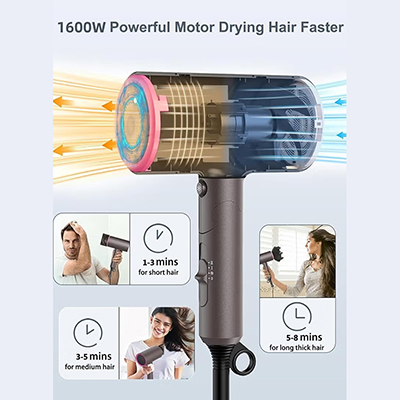Low MOQ | Sample Available Ionic Hair Dryer 1600W - Fast Drying Blower Hair Dryer with Thermo-Control, Low Noise, Includes Hair Diffuser and Concentrator for Perfect Styling