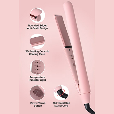 Low MOQ | Sample Available Hair Straightener with 3D Floating Ceramic Plates – Anti-Scald Rounded Design, Up to 230°C (450℉) High Heat, Dual Voltage, Auto Shut Off