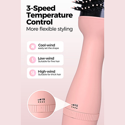 Low MOQ | Sample Available Hair Dryer Brush – 75mm Oval Hot Air Styler for Smooth, Frizz-Free Volume Blow Dryer & Hair Styling Tool (Pink)