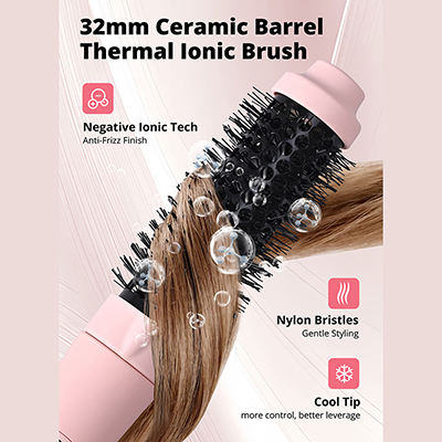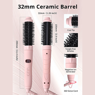 OEM/ODM Supported Thermal Brush Ionic Hair Styler Brush, 32mm Barrel for Straightening & Curling, Smooth & Shiny Hair, Adjustable 60–220°C, Fast Heat, Global Voltage
