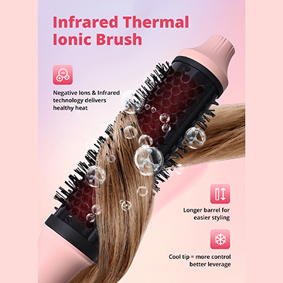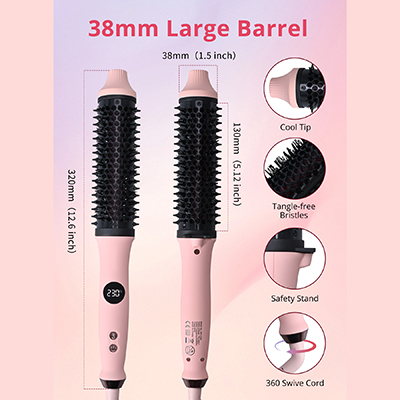 Low MOQ Thermal Brush, Hair Styler Brush with Infrared & Negative Ions, 38mm Straightening Brush for Dry Hair, Smooth & Shiny Waves, Up to 230°C, Global Voltage